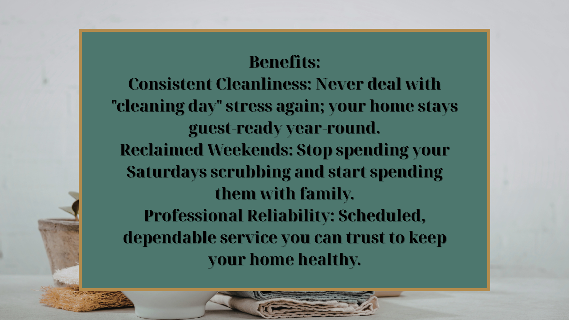 Enjoy consistent savings. Bi-Weekly clients automatically receive a 10% OFF discount off our standard base rate, making this a highly cost-effective way to maintain your home year-round.