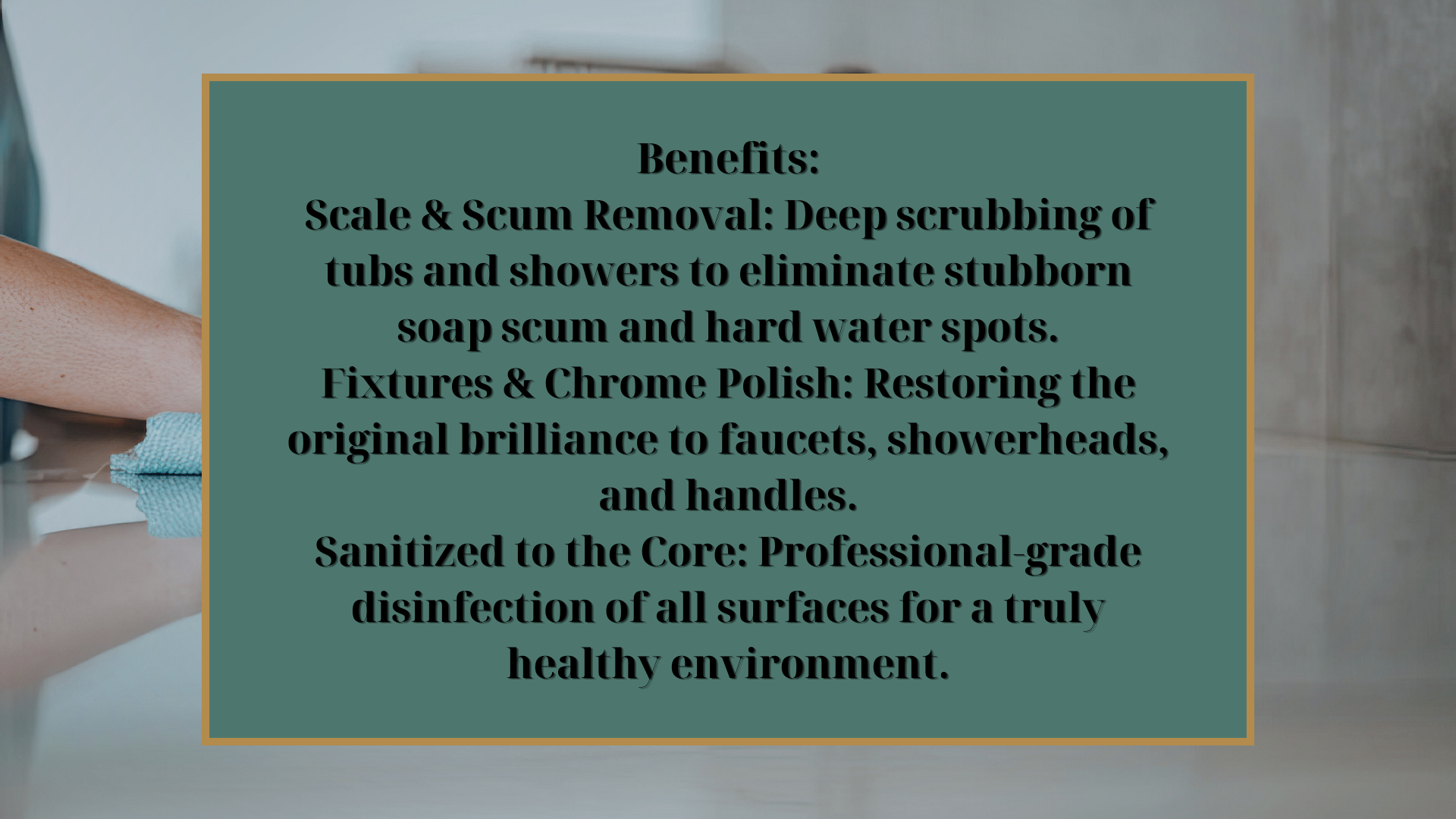 • Deep scrubbing of shower/tub fiberglass, tile, and stone