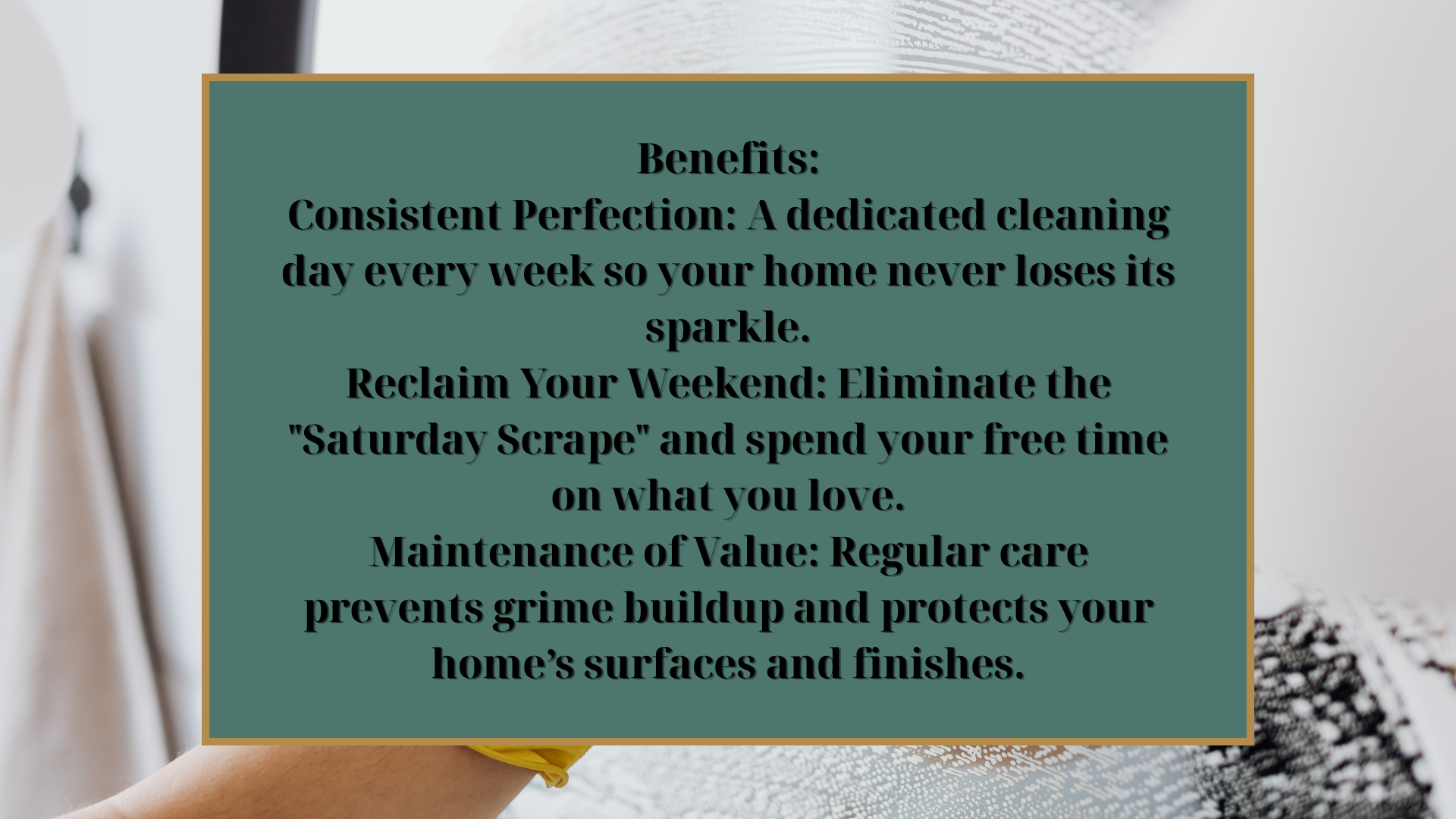 - Upkeep scrub of shower/tub and glass doors