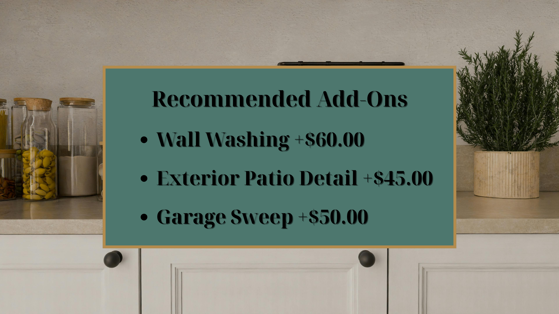 - Sanitize all countertops & backsplash